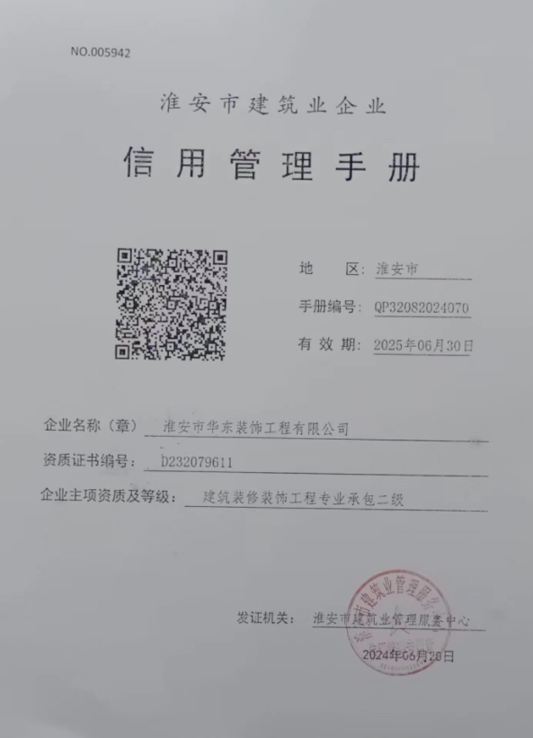 淮安市華東裝飾工程有限公司成立于2005年1月,企業性質為民營股份制企業,是一家管理體制,質量保證體系嚴密的專業裝飾公司,是淮安裝飾業界優秀企業之一。企業注冊資金1010萬元,擁有建筑裝飾裝修專業承包二級資質;電子與智能化工程專業承包二級資質;了解更多>>